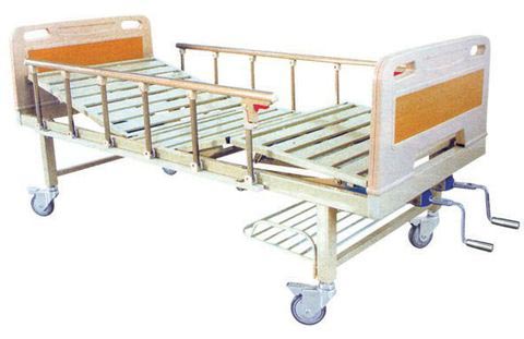 2、 雙搖床。雙搖床比單搖床功能多了一個腿板升降功能。這種病床一般是腿部有病患者使用的,通過腿板功能的升降,患者可以不用自己用力抬腿就可以使腿得到抬起、彎曲等動作。床下還可以放一些日常必須用品。