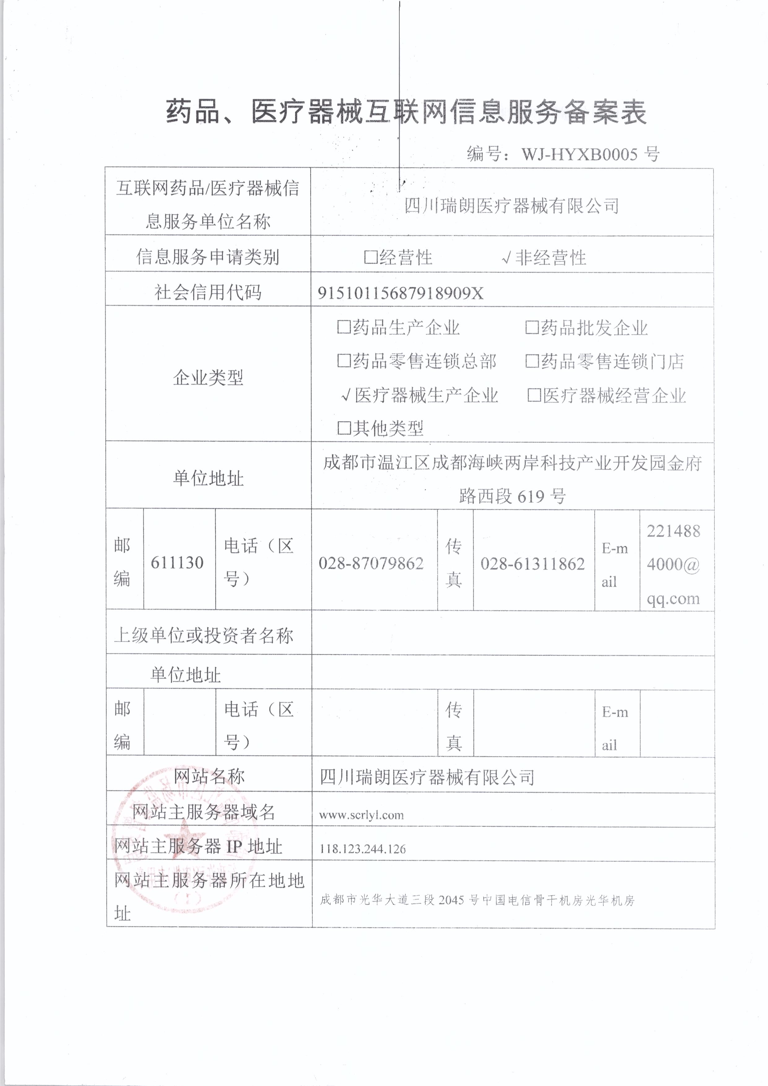 版權(quán)所有:四川瑞朗醫(yī)療器械有限公司   地址:成都市溫江區(qū)海峽兩岸科技產(chǎn)業(yè)開發(fā)園金府路西段619號   聯(lián)系電話:028-87079862 87572862
