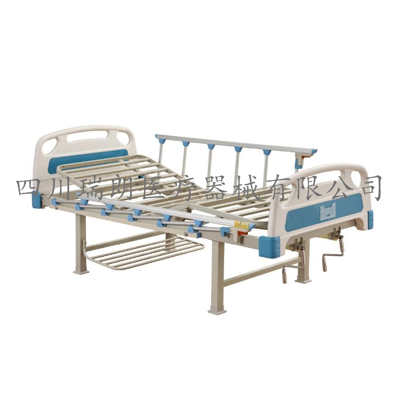 型號:RC-005(ABS)-3333 手動病床(手動雙搖矩管床面+鋁合金折疊護(hù)欄+雜物架)