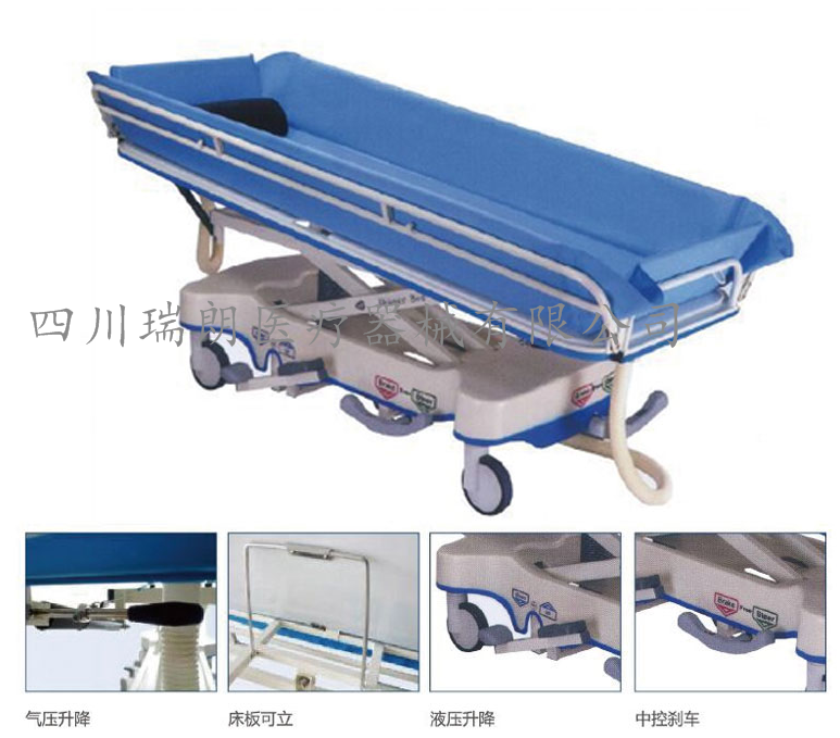交叉式油壓升降結(jié)構(gòu),踏式油壓升降,減輕工作強(qiáng)度,承重≦24KG。 前后左右4面都有中控剎車踏板,方便安全,底部設(shè)有輔助導(dǎo)向輪,輕松走直線。 床頭床尾設(shè)有氣動(dòng)桿,可輕松將床頭或者床尾抬起。 前后都有排水孔,方便護(hù)理人員操作。洗浴后將床板立起可方便沖洗及晾干,方便衛(wèi)生。 床體為不銹鋼制成再以粉體涂裝,美觀,耐用,全進(jìn)口產(chǎn)品,品質(zhì)卓越。配件;軟枕 1個(gè) 雙層排水軟喉管2條。產(chǎn)品尺寸.長(zhǎng)1950*寬800 升降高度530-900mm